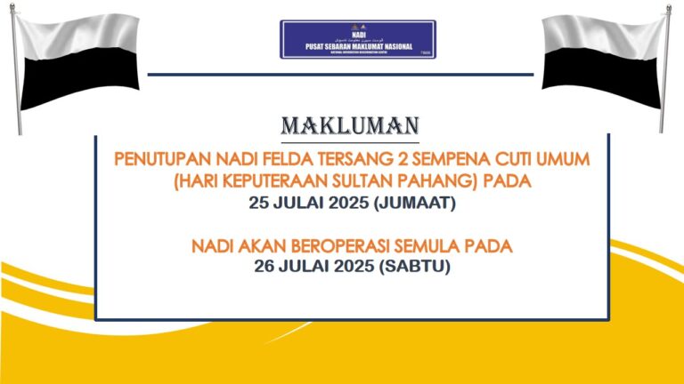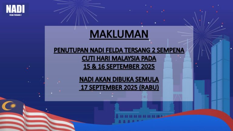 * Program Khas Merdeka & Hari Malaysia @ NADI * Jom ramai-ramai datang ke NADI Felda Tersang 2 untuk sambutan istimewa sempena Hari Merdeka & Hari Malaysia @ NADI Tarikh: 7 September 2025 (Ahad) Masa: 10.00 pagi – 4.00 petang […]