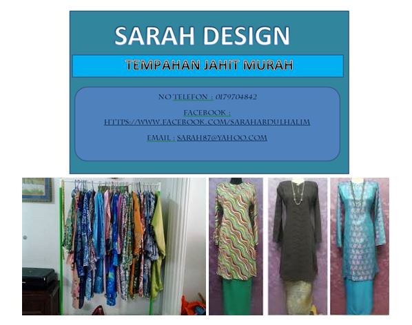 Pn Sarah Abdul Halim mula belajar menjahit selama 6 bulan di Giat MARA Raub. Pelbagai jenis jahitan pakaian yang dipelajari antaranya baju kurung, baju kurung moden, skirt labuh dan lain-lain. Selepas 3 tahun tamat belajar di Giat MARA Raub, Pn Sarah mula menerima tempahan menjahit dari pelanggan, Pn Sarah menerima banyak tempahan daripada pelanggan kerana harga jahitan baju yang ditawarkan adalah sangat murah. Pn Sarah juga mempromosikan perkhidmatan menjahit di laman facebook dan aplikasi whatsapp serta My Shop Dashboard Komuniti.
